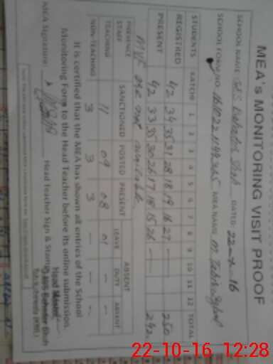 | Monitoring Date: 22-10-2016 | Start Time: 22-10-2016 11:43 AM | End Time: 22-10-2016 12:28 PM | Name of MEA: M.Ta**** Iq**** (S**** | |