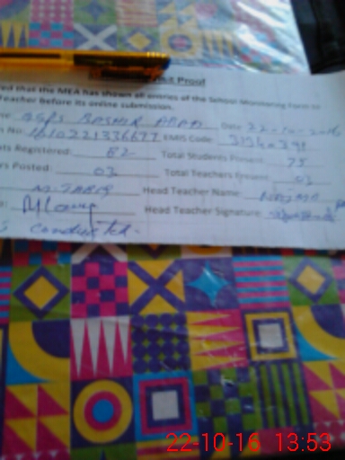 | Name: MA**** SH**** Designation: (School Headmaster's/Headmistress's) PST Phone/Cell Number: 03**** |