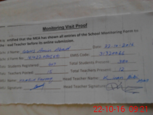 | EMIS Code: 31320066 | Name of School: GGHS AMIN ABAD | |||