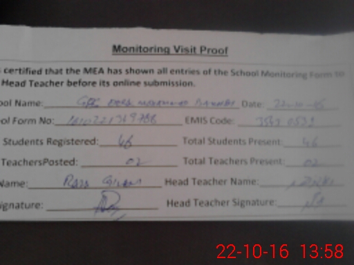 | Certified that this School was Inspected by the Undersigned MEA/DMO Today and the Information Stated Above is as Per Record. | |||||