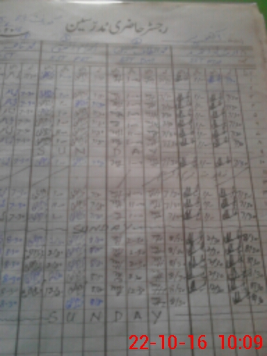 | CNIC | Full Name | Designation | R/C | Absence During Last Calender Month |