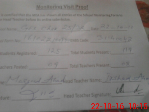 | EMIS Code: 31140042 | Name of School: GES CHAK NO. 25/3-R | |||