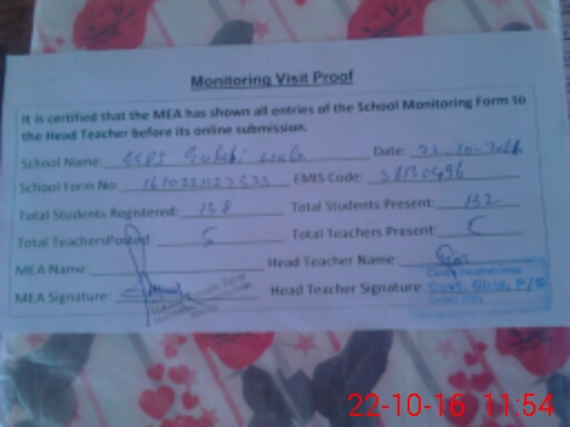 | Attendance Register | Head Teacher | MEA with School | Visit Proof |