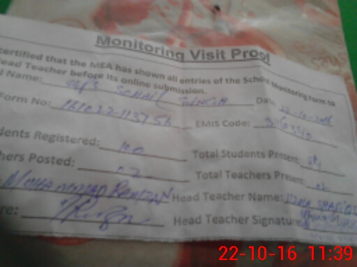 | Attendance Register | Head Teacher | MEA with School | Visit Proof |