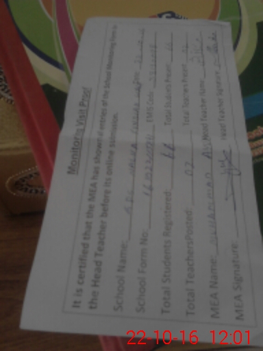 | Certified that this School was Inspected by the Undersigned MEA/DMO Today and the Information Stated Above is as Per Record. | |||||