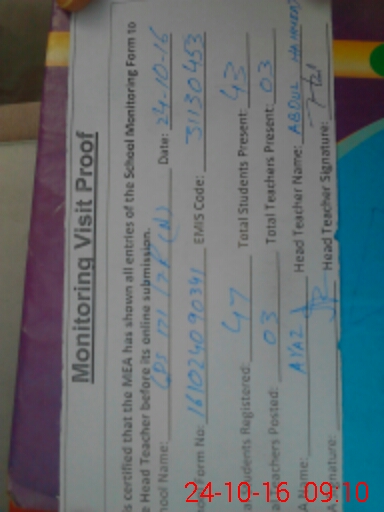| Certified that this School was Inspected by the Undersigned MEA/DMO Today and the Information Stated Above is as Per Record. | |||||