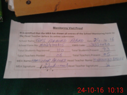 | Certified that this School was Inspected by the Undersigned MEA/DMO Today and the Information Stated Above is as Per Record. | |||||