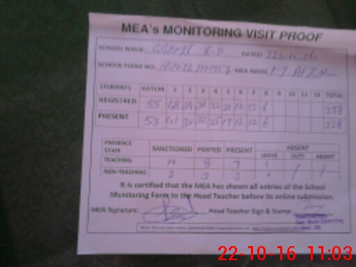 | Certified that this School was Inspected by the Undersigned MEA/DMO Today and the Information Stated Above is as Per Record. | |||||