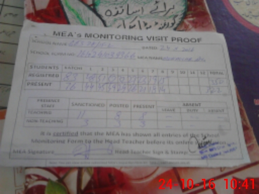 | Certified that this School was Inspected by the Undersigned MEA/DMO Today and the Information Stated Above is as Per Record. | |||||
