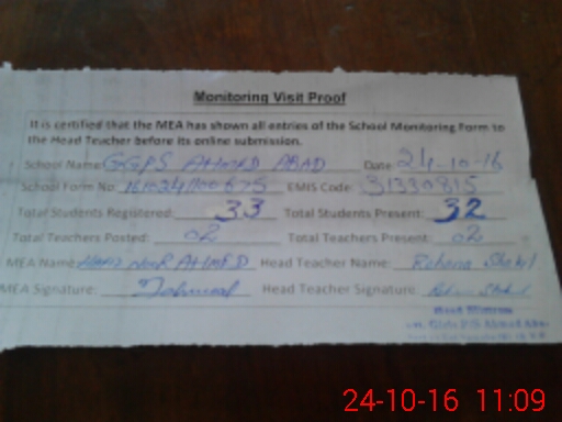 | Certified that this School was Inspected by the Undersigned MEA/DMO Today and the Information Stated Above is as Per Record. | |||||