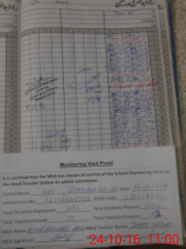 | Certified that this School was Inspected by the Undersigned MEA/DMO Today and the Information Stated Above is as Per Record. | |||||