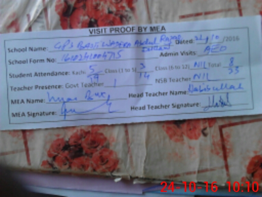 | EMIS Code: 32430225 | Name of School: GPS BASTI WADERA ABDUL RAZZAQ DULLANI | |||