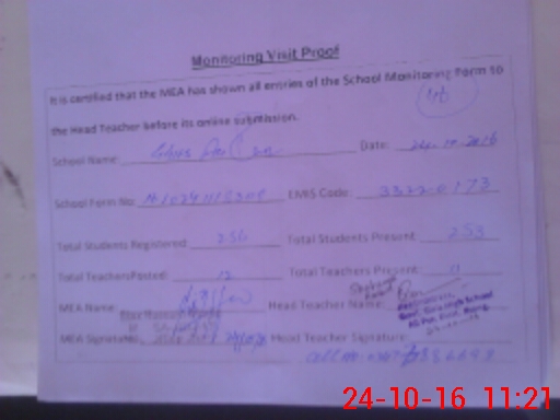 | Certified that this School was Inspected by the Undersigned MEA/DMO Today and the Information Stated Above is as Per Record. | |||||