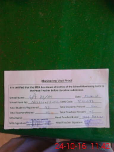 | Attendance Register | Head Teacher | MEA with School | Visit Proof |