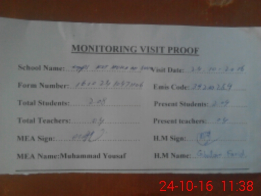 | Certified that this School was Inspected by the Undersigned MEA/DMO Today and the Information Stated Above is as Per Record. | |||||