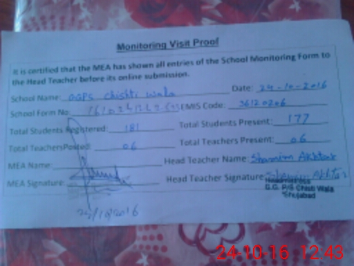 | EMIS Code: 36120206 | Name of School: GGPS CHISHTI WALA SHUJABAD | |||