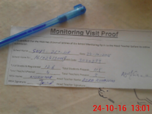 | Attendance Register | Head Teacher | MEA with School | Visit Proof |