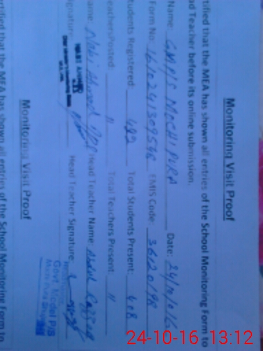 | Certified that this School was Inspected by the Undersigned MEA/DMO Today and the Information Stated Above is as Per Record. | |||||