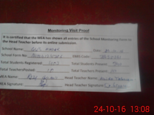 | Certified that this School was Inspected by the Undersigned MEA/DMO Today and the Information Stated Above is as Per Record. | |||||