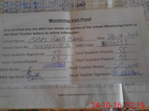 | EMIS Code: 36120293 | Name of School: GGPS BASTI DAD SHUJABAD MULTAN | |||