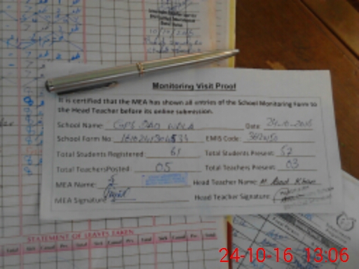 | Certified that this School was Inspected by the Undersigned MEA/DMO Today and the Information Stated Above is as Per Record. | |||||