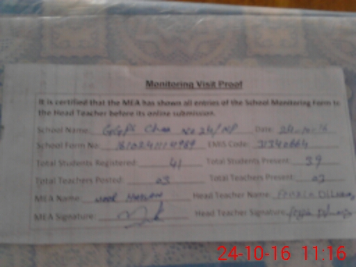 | Certified that this School was Inspected by the Undersigned MEA/DMO Today and the Information Stated Above is as Per Record. | |||||