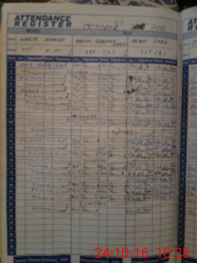 | CNIC | Full Name | Designation | R/C | Absence During Last Calender Month |
