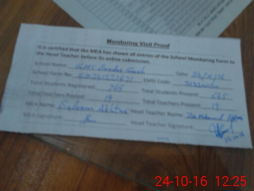 | Certified that this School was Inspected by the Undersigned MEA/DMO Today and the Information Stated Above is as Per Record. | |||||