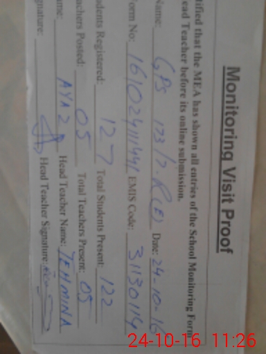 | EMIS Code: 31130114 | Name of School: GPS CHAK NO.173/7-R SHARQI | |||