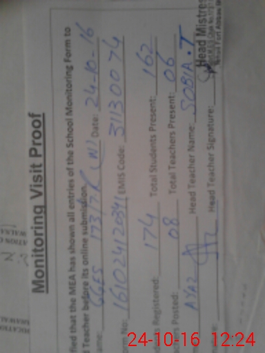 | Certified that this School was Inspected by the Undersigned MEA/DMO Today and the Information Stated Above is as Per Record. | |||||
