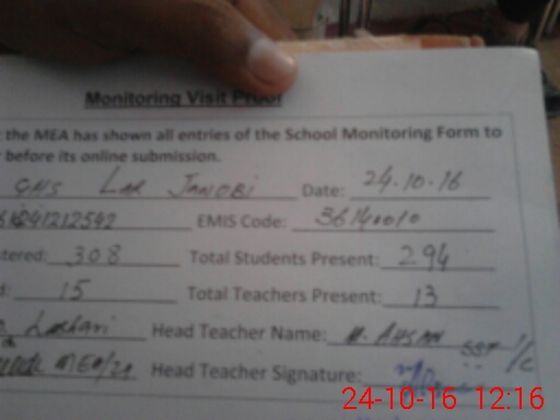 | Attendance Register | Head Teacher | MEA with School | Visit Proof |