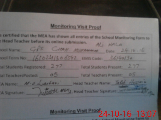 | EMIS Code: 36140130 | Name of School: GPS CHAH MUHAMMAD ALI WALA | |||