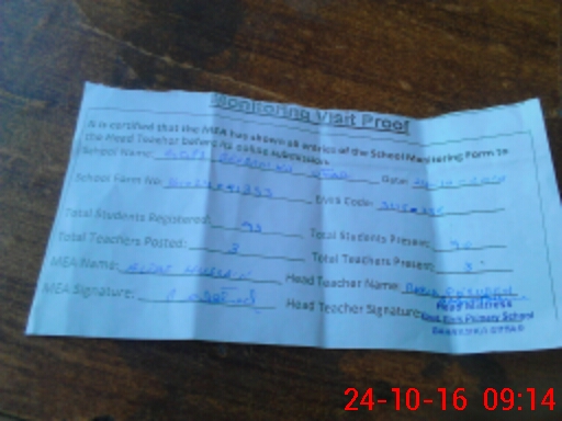 | Attendance Register | Head Teacher | MEA with School | Visit Proof |