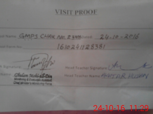 | EMIS Code: 38230475 | Name of School: GMPS CHAK NO. 23 MB | |||