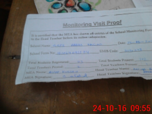 | Attendance Register | Head Teacher | MEA with School | Visit Proof |