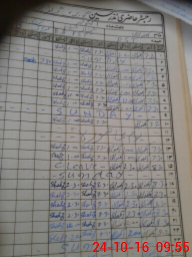 | CNIC | Full Name | Designation | R/C | Absence During Last Calender Month |