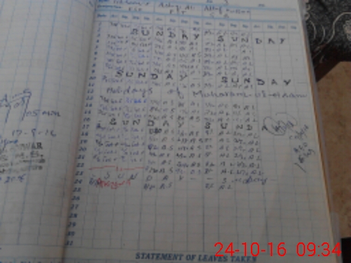 | CNIC | Full Name | Designation | R/C | Absence During Last Calender Month |