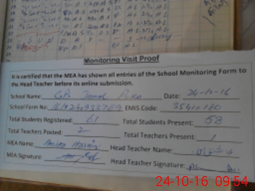 | Attendance Register | Head Teacher | MEA with School | Visit Proof |