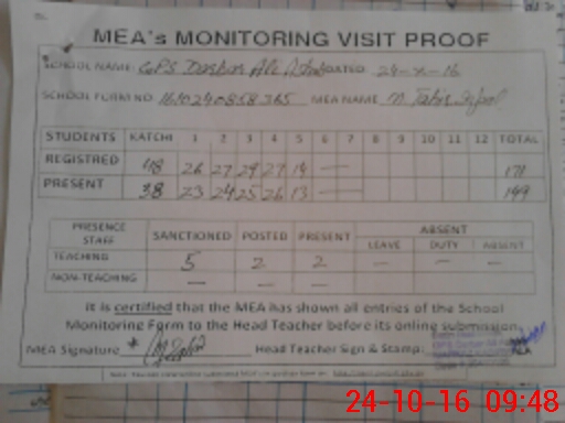 | Attendance Register | Head Teacher | MEA with School | Visit Proof |