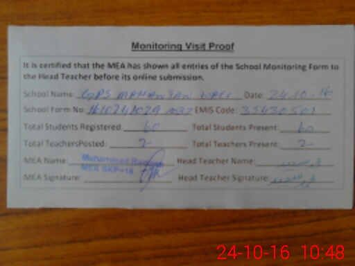 | Certified that this School was Inspected by the Undersigned MEA/DMO Today and the Information Stated Above is as Per Record. | |||||