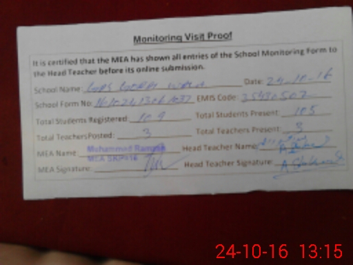 | EMIS Code: 35430502 | Name of School: GPS GORAI WALA | |||
