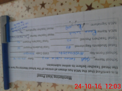 | Certified that this School was Inspected by the Undersigned MEA/DMO Today and the Information Stated Above is as Per Record. | |||||