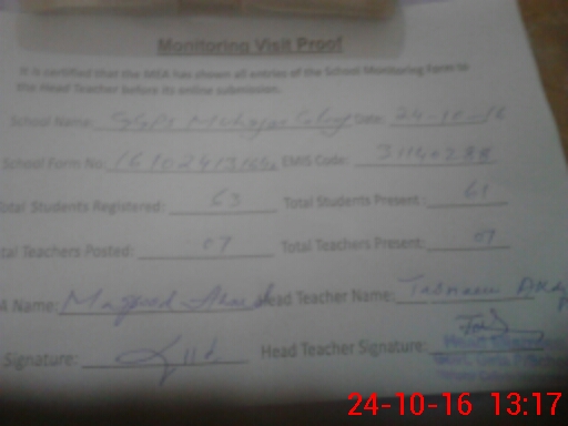 | Attendance Register | Head Teacher | MEA with School | Visit Proof |