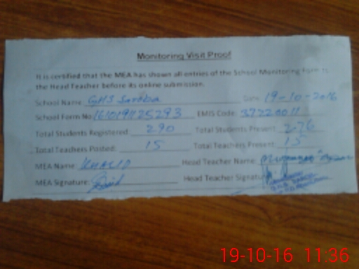 | Certified that this School was Inspected by the Undersigned MEA/DMO Today and the Information Stated Above is as Per Record. | |||||