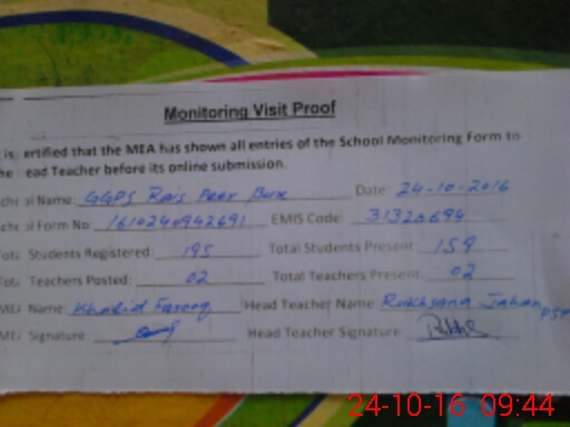 | Monitoring Date: 24-10-2016 | Start Time: 24-10-2016 09:19 AM | End Time: 24-10-2016 09:46 AM | Name of MEA: Kh**** Fa**** | |