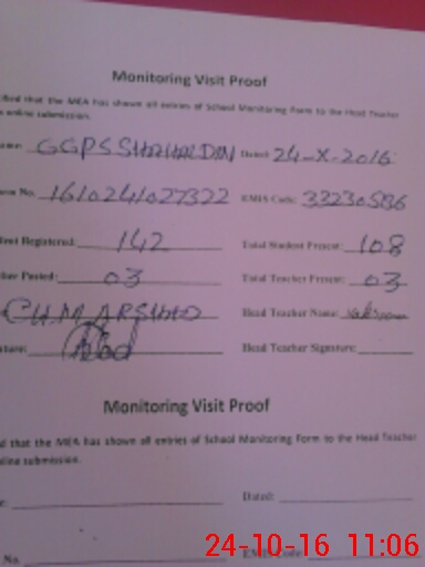 | EMIS Code: 33230586 | Name of School: GGPS SHAHAL DIN | |||