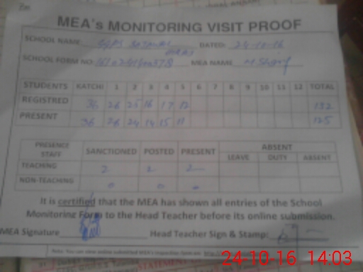 | Certified that this School was Inspected by the Undersigned MEA/DMO Today and the Information Stated Above is as Per Record. | |||||