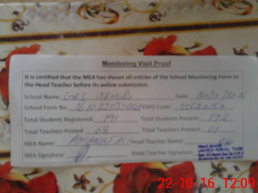 | Certified that this School was Inspected by the Undersigned MEA/DMO Today and the Information Stated Above is as Per Record. | |||||
