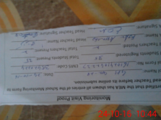 | Certified that this School was Inspected by the Undersigned MEA/DMO Today and the Information Stated Above is as Per Record. | |||||