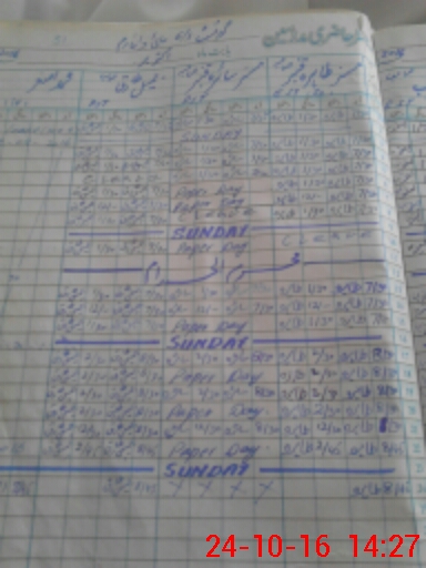 | CNIC | Full Name | Designation | R/C | Absence During Last Calender Month |